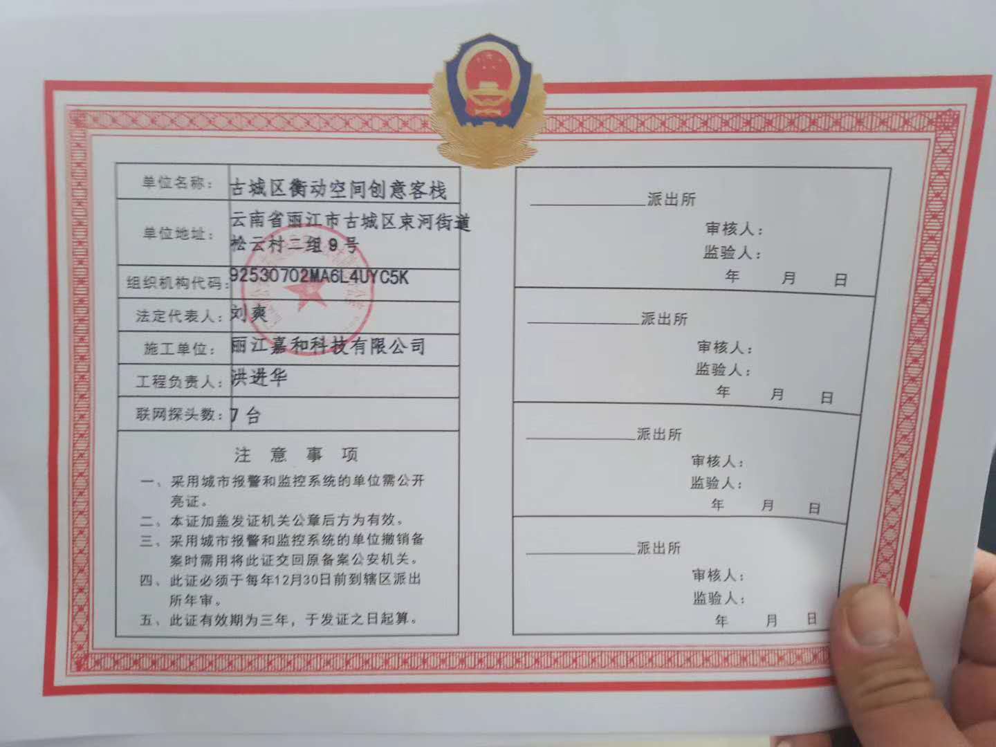 關于麗江和府酒店有限公司英迪格酒店電子監(jiān)控安防合格證下證通知