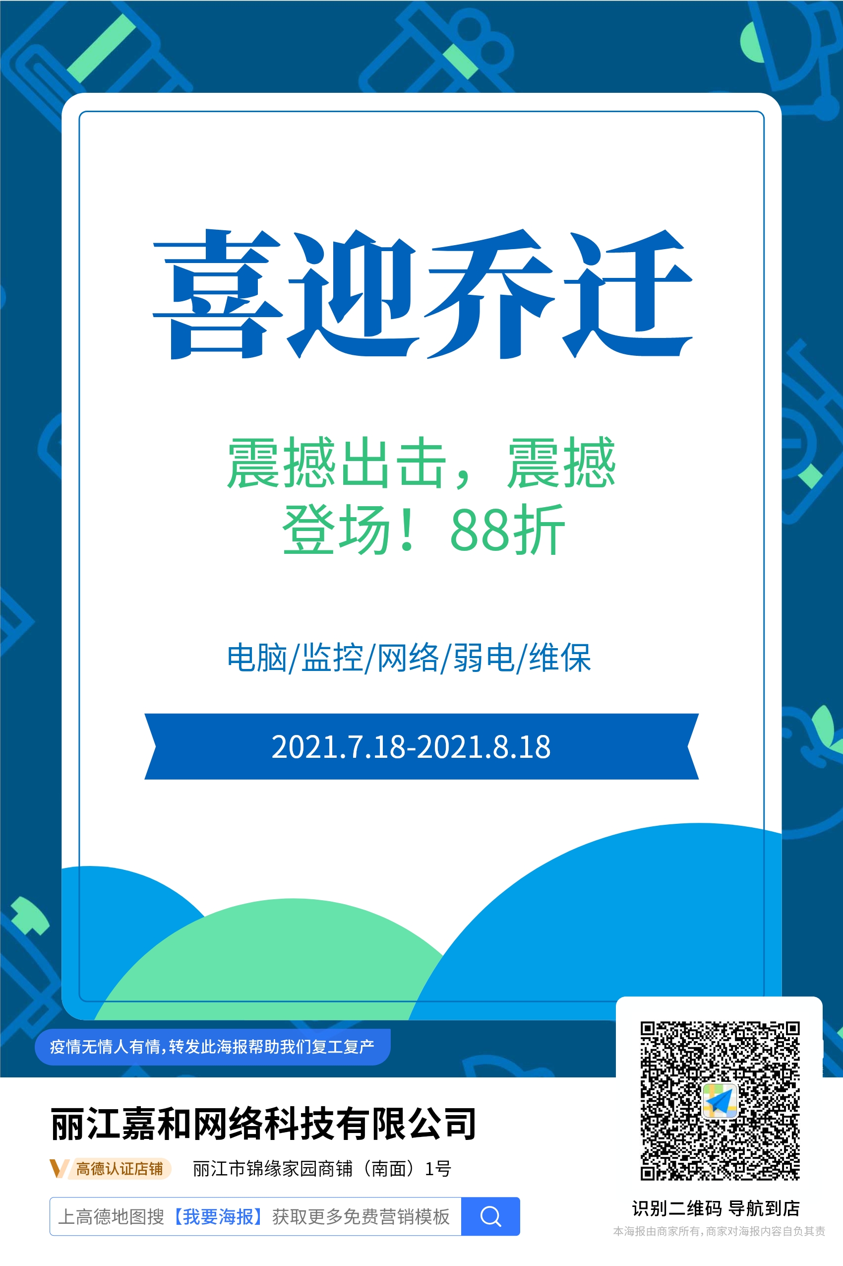 我司因業(yè)務(wù)發(fā)展需要,現(xiàn)公司地址搬遷至麗江市錦緣家園1號商鋪嘉和科技公司。有何疑問,歡迎來電。