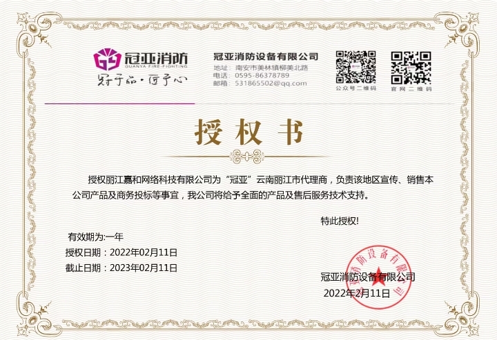 關(guān)于麗江和府酒店有限公司英迪格酒店電子監(jiān)控安防合格證下證通知