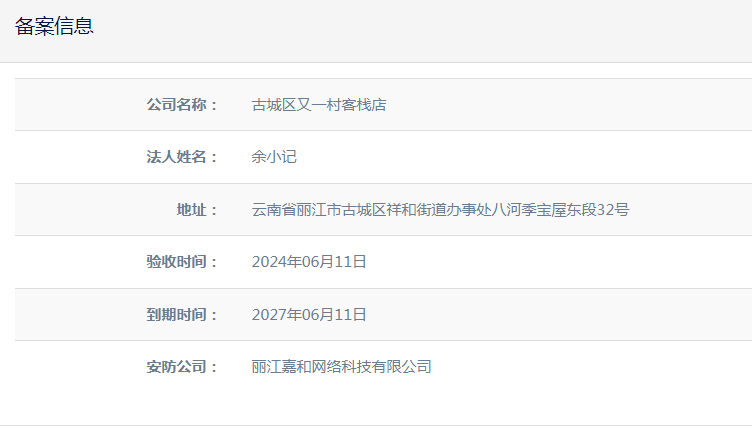 關于古城區(qū)又一村客棧店電子安防合格證下證通知
