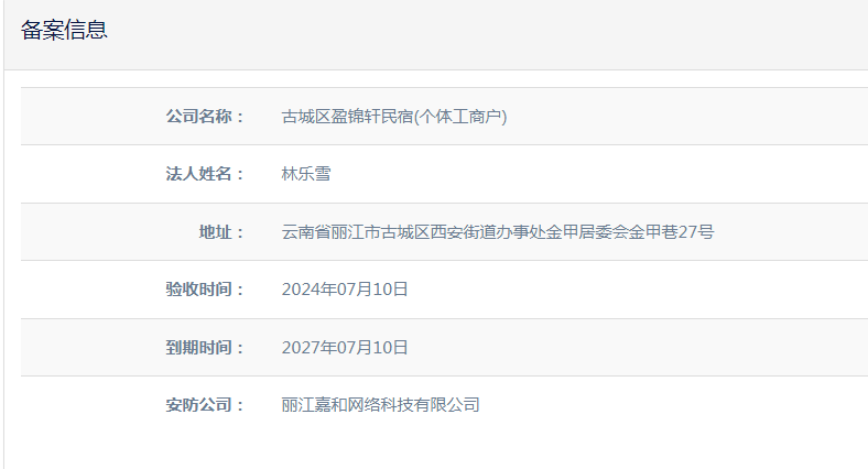 關(guān)于古城區(qū)盈錦軒民宿(個(gè)體工商戶)電子監(jiān)控安防合格證下證通知