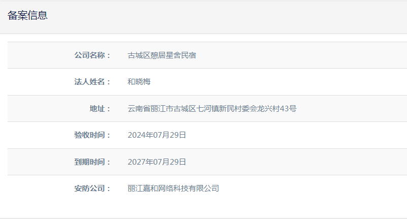 關(guān)于麗江和府酒店有限公司英迪格酒店電子監(jiān)控安防合格證下證通知
