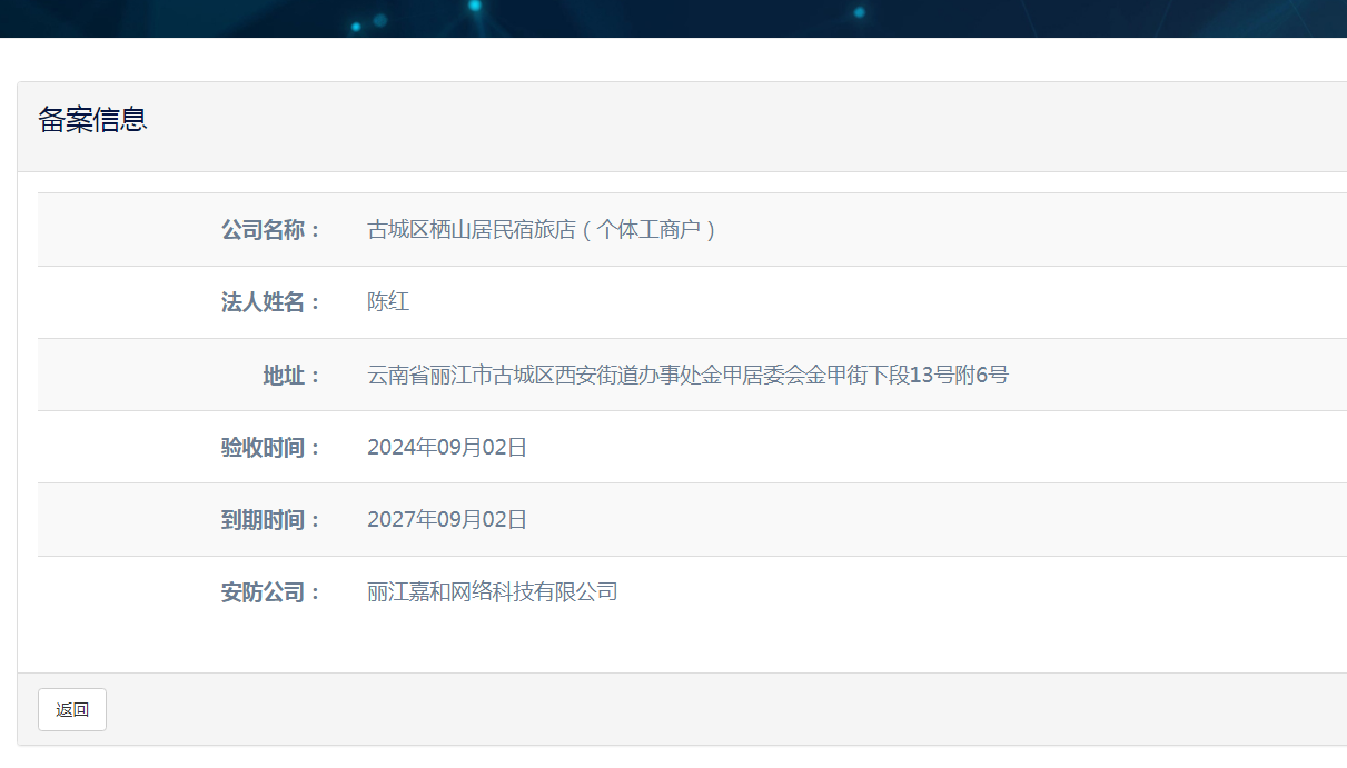關(guān)于古城區(qū)棲山居民宿旅店(個(gè)體工商戶)電子監(jiān)控安防合格證下證通知