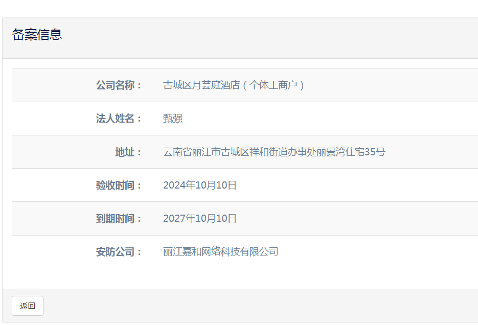 關(guān)于麗江和府酒店有限公司英迪格酒店電子監(jiān)控安防合格證下證通知