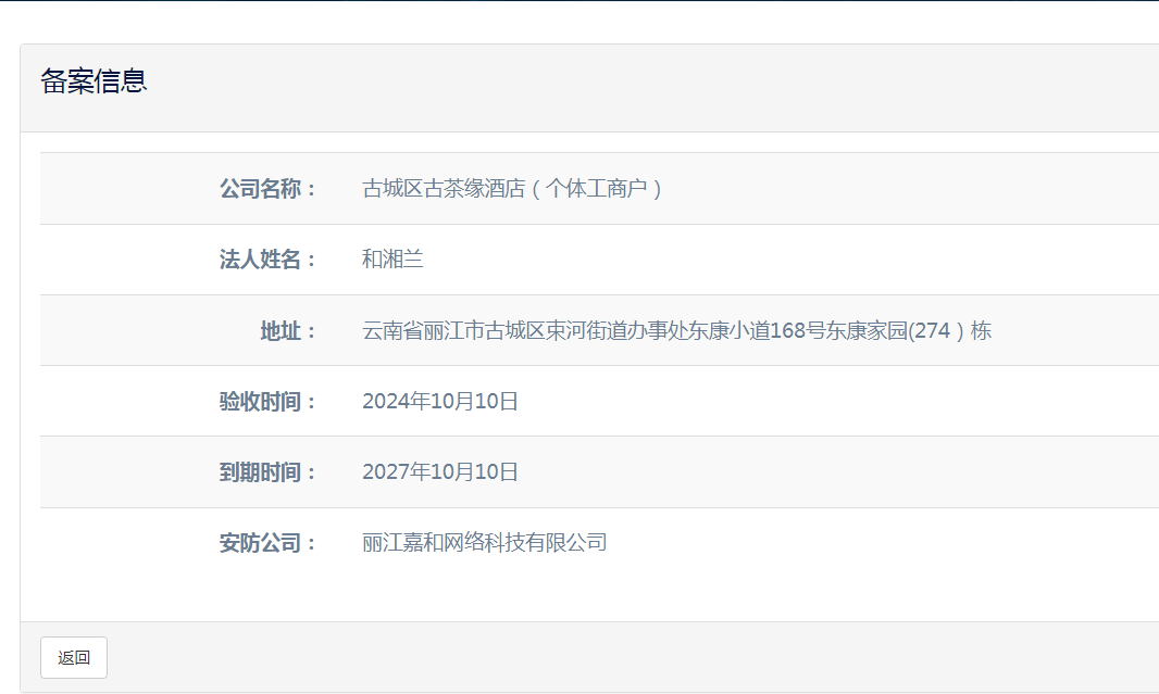 關(guān)于麗江和府酒店有限公司英迪格酒店電子監(jiān)控安防合格證下證通知