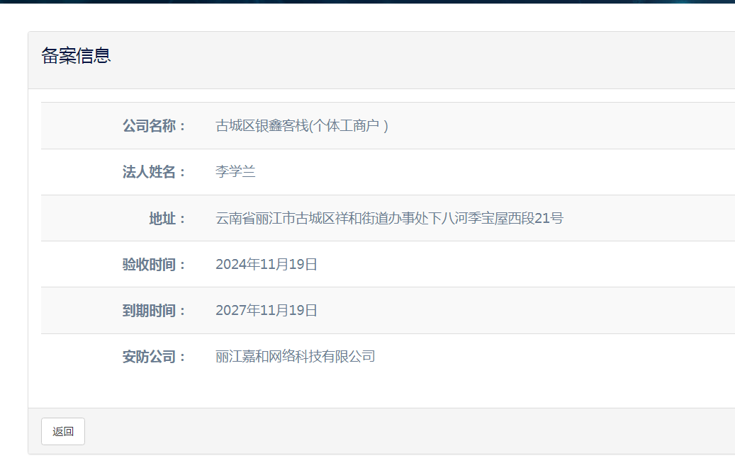 關(guān)于古城區(qū)銀鑫客棧(個(gè)體工商戶(hù))電子監(jiān)控安防合格證下證通知