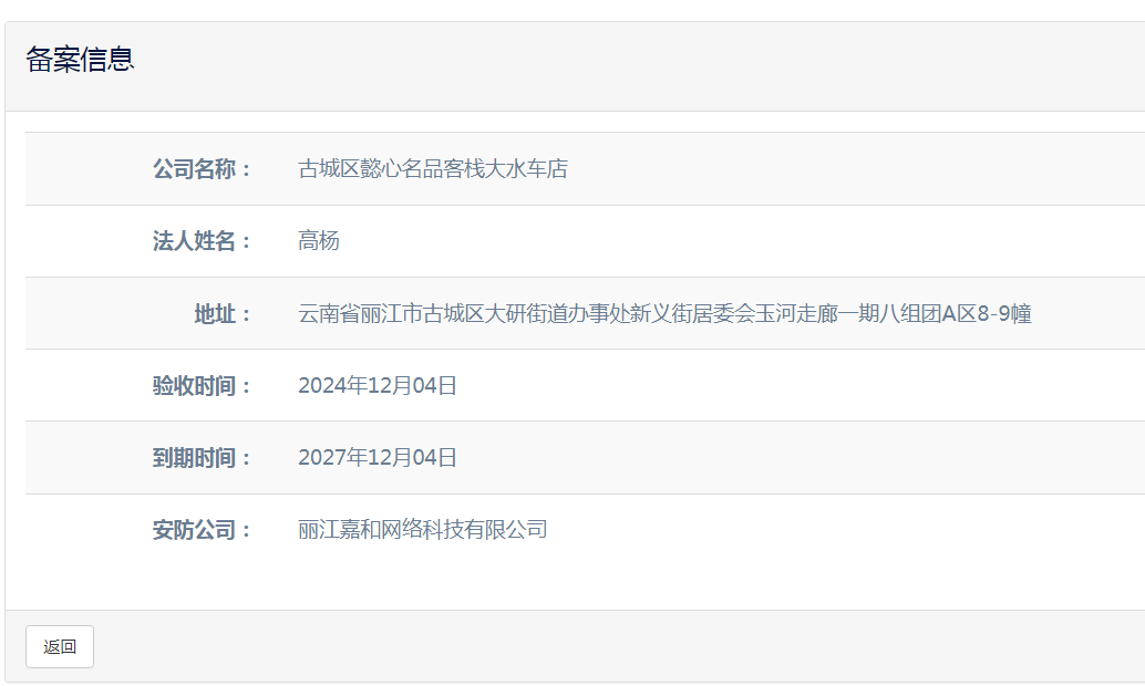 關(guān)于麗江和府酒店有限公司英迪格酒店電子監(jiān)控安防合格證下證通知