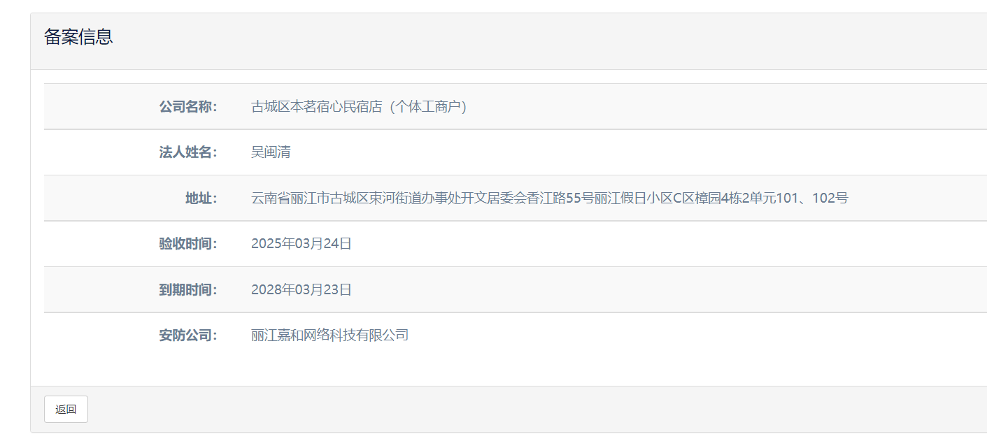 關(guān)于麗江和府酒店有限公司英迪格酒店電子監(jiān)控安防合格證下證通知