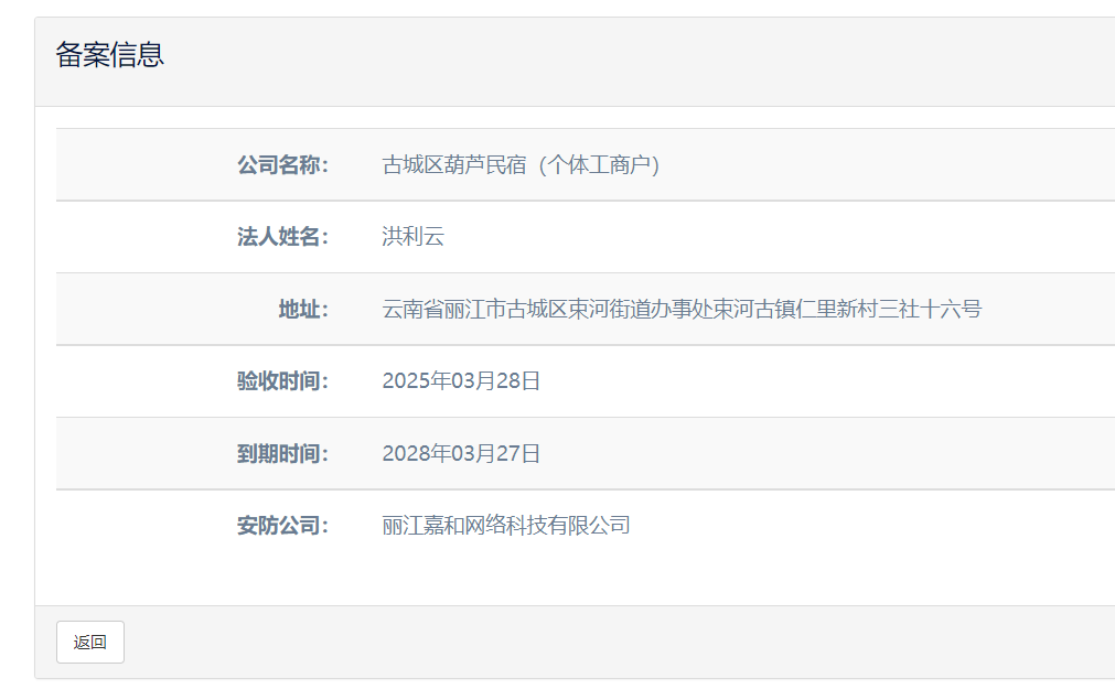 關于古城區(qū)葫蘆民宿(個體工商戶)電子監(jiān)控安防合格證下證通知