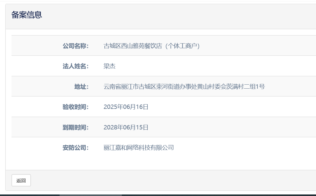 關于古城區(qū)西山雅苑餐飲店(個體工商戶)電子監(jiān)控安防合格證下證通知