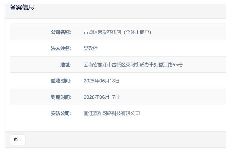 關(guān)于麗江和府酒店有限公司英迪格酒店電子監(jiān)控安防合格證下證通知
