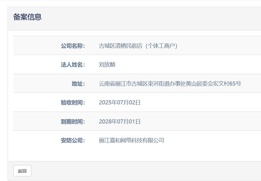 關(guān)于古城區(qū)清棲民宿店(個體工商戶)電子監(jiān)控安防合格證下證通知