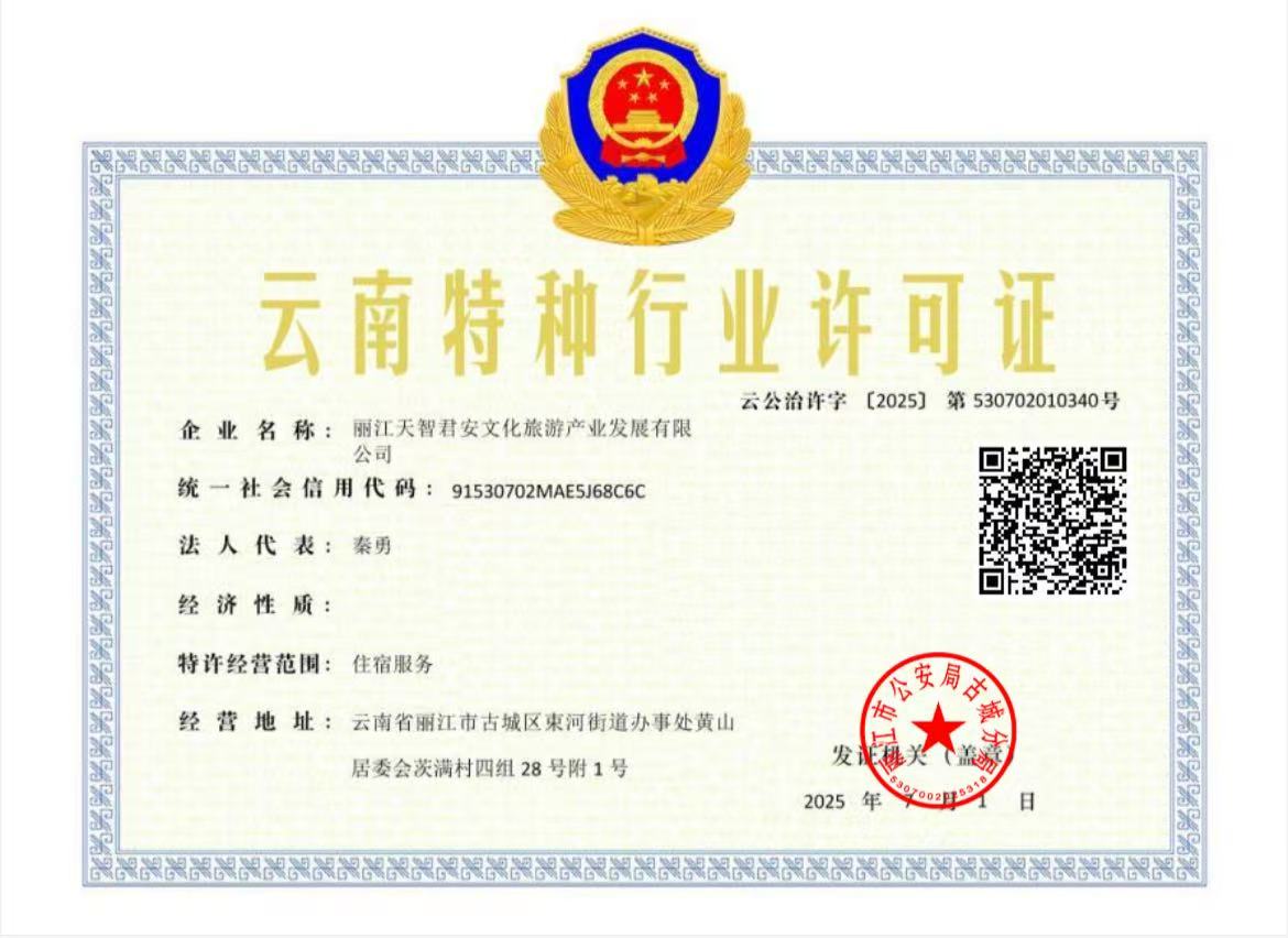 關(guān)于麗江天智君安文化旅游產(chǎn)業(yè)發(fā)展有限公司電子特種行業(yè)許可證下證通知