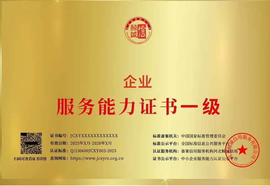 熱烈慶祝我司榮獲企業(yè)服務(wù)能力證書一級