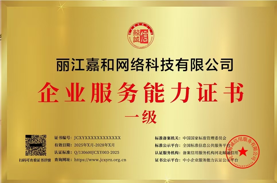 熱烈慶祝我司榮獲企業(yè)服務(wù)能力證書一級